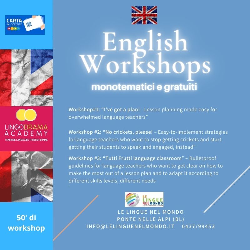 Si fa presente che i Workshops potrebbero essere propedeutici al corso completo di LingoDrama.