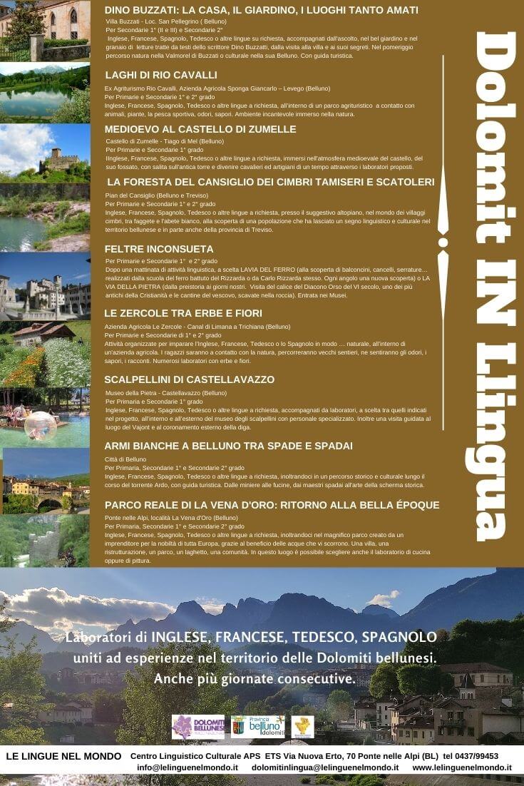 Laboratori in lingua inglese, francese e spagnola, ma anche tedesca, immersi nel territorio della Valbelluna, alle porte delle Dolomiti.