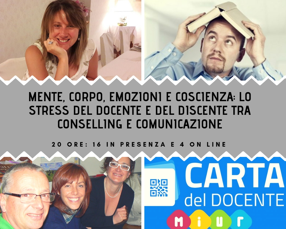 Programma: Il corso si articola in 4 incontri da 4 ore ciascuno in presenza, in una delle località indicate. Le altre 4 ore sono in piattaforma Fidenia (2 precedenti il corso e due seguenti come follow up). L’attestato rilasciato sarà di 20 ore. Le ore in piattaforma saranno a gestione libera. Il presente Progetto delinea un percorso che si pone come obbiettivo quello di fornire una base di conoscenze scientifiche specifiche, derivate dalle neuroscienze, dalla parte più avanzata della medicina e in particolare dalla Neuropsicosomatica, che ci permettono di comprendere tutti i meccanismi che stanno alla base del nostro funzionamento e dei nostri comportamenti come Esseri umani.