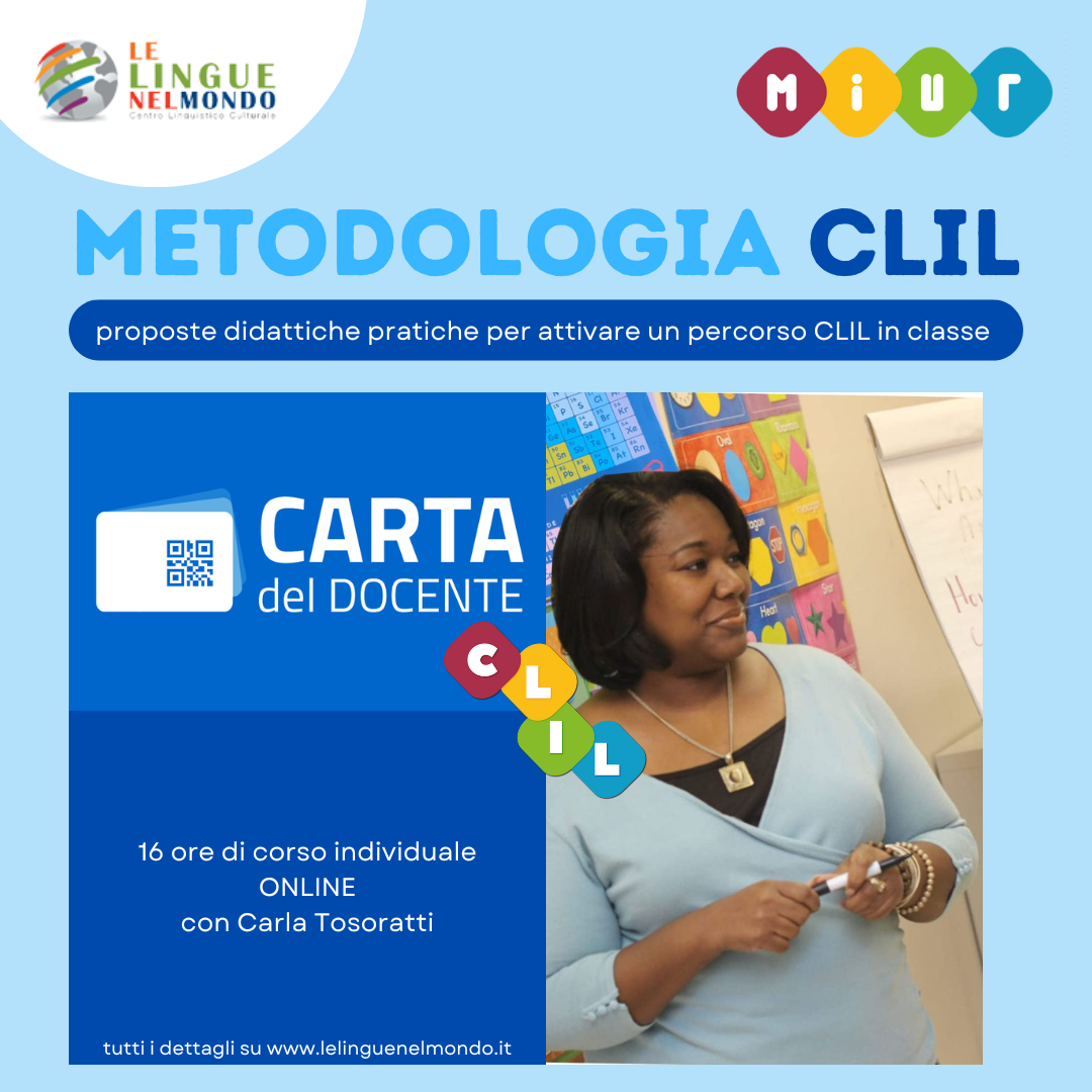 Obiettivi: introdurre la metodologia CLIL nella didattica, offrendo ai partecipanti la possibilità di acquisire e sperimentare conoscenze e strategie volte a pianificare una lezione/modulo CLIL in lingua inglese; migliorare le competenze linguistico-comunicative in lingua inglese.