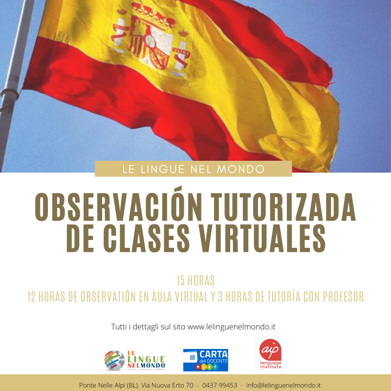 Totale ore: 15 ore totali (12 de observación en aula virtual + 3 horas de tutoría con profesor). Tutti i lunedì, senza numero minimo di partecipanti.